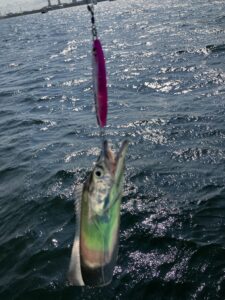ポツポツ釣れますが、風が強くなり、移動で太刀魚終了です。
