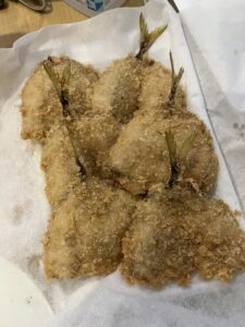釣ったアジは20匹くらいは友人たちに貰われて行きましたが、魚熊さんにアジフライにしていただきました。