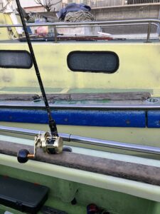 適当に左舷の胴の間に釣り座を構えます。